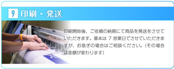 チラシ印刷での広島チラシ作成.comの強みは、スピードと価格です。チラシ印刷で、一番大事なのは価格とスピードだと広島チラシ作成.comは思います。 広島チラシ作成.comはチラシ印刷の場合ですと、最短当日もしくは翌日発送ができ、ご依頼人様の希望に応じてお手元に届くように最大限努力をしております。 チラシデザインは持っているけれど、印刷が安くできない等のお困りの時は是非弊社へお気軽にお電話いただければと思います。また、価格を重視されるお客様に対しては、最大7営業日での格安な印刷プランも多数ご用意しておりますので、お気軽にご相談いただければと思います。